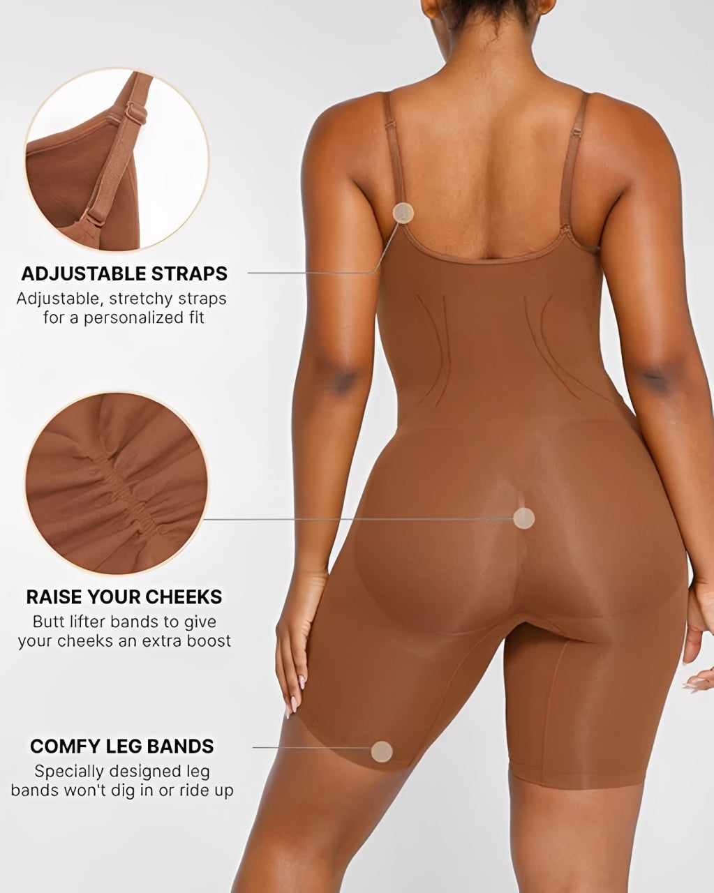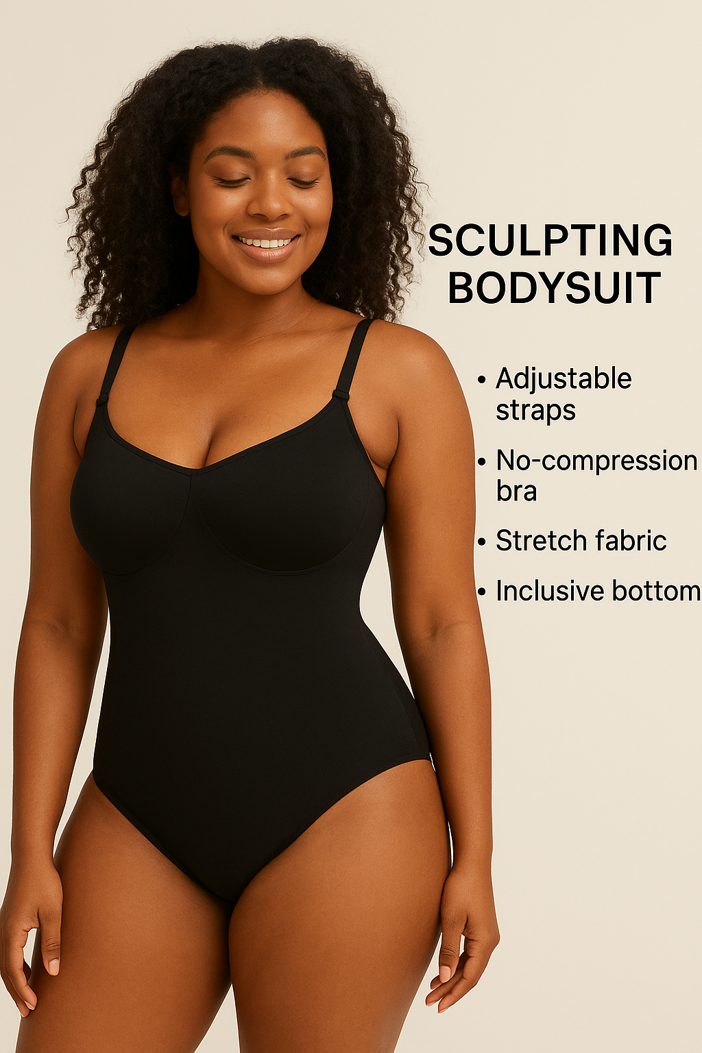 Our sculpting bodysuit is all about comfort, confidence, and curves. With an inclusive bottom that fits every shape, adjustable straps for a custom fit, a no-compression bra for gentle support, and stretch fabric that flexes with you, it smooths, shapes, and celebrates your natural silhouette.